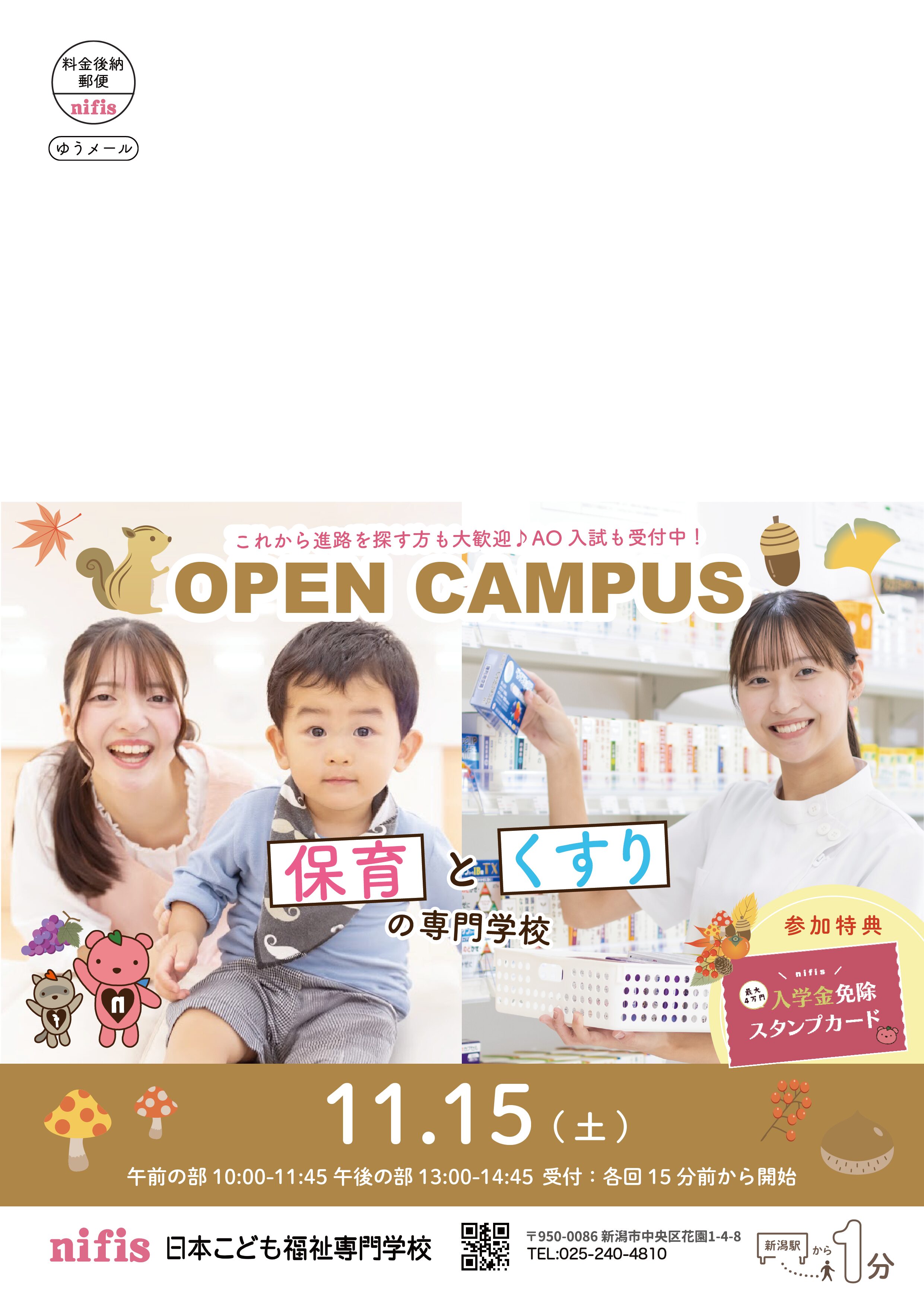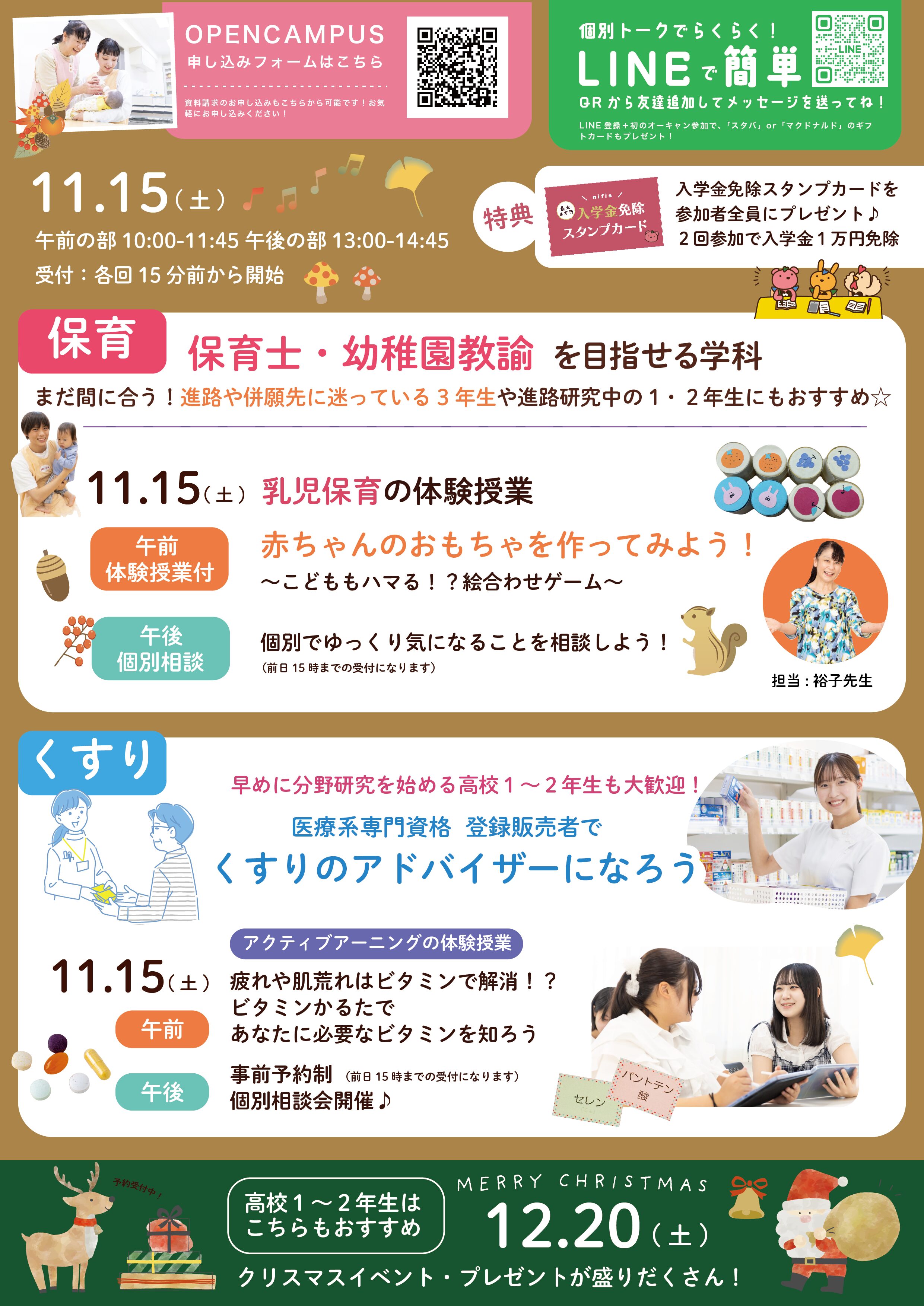 11月のオープンキャンパスは11月15日(土)開催!🍂